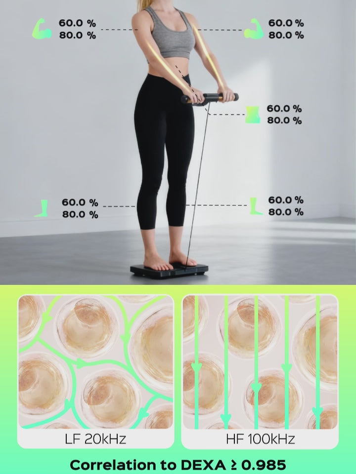 Using both high & low frequency signals, we penetrate cell membranes to measure intracellular fluid—delivering lab-grade accuracy in body composition analysis.